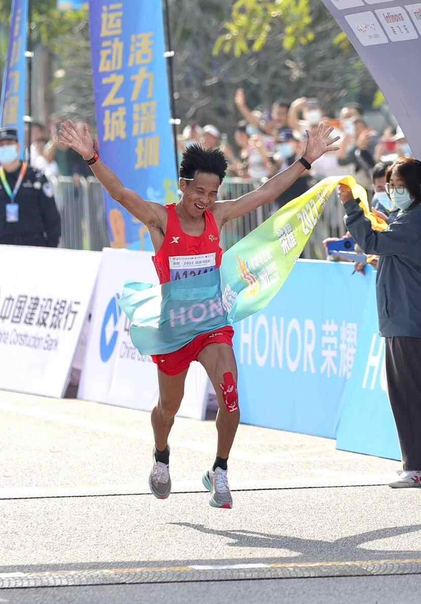 2月19日9时50分左右,2022深圳马拉松全马成绩出炉,中国选手何杰以2小时13分28秒的成绩获得男子全程冠军。深马历史上首次由国内选手夺得男子全马冠军。来自埃塞俄比亚的塔法塞·阿比和范塔胡恩·西门尼分获第二名和第三名,成绩分别为2小时13分50秒和2小时13分56秒。