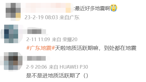 而2月以来,广东也发生了两次3级以上地震,分别是2月5日佛山市三水区的3.2级地震,以及2月11日河源市源城区的4.3级地震。不少广东的小伙伴表示有震感,真切地感受到地震离我们并不遥远。