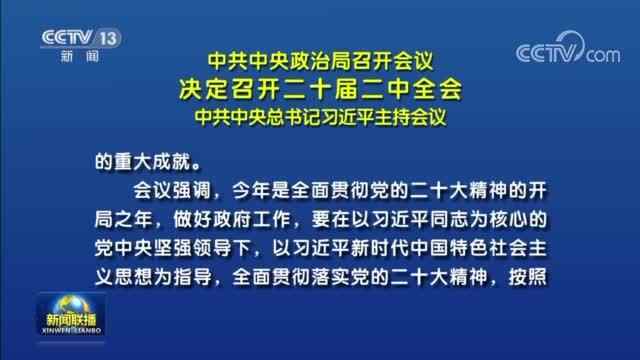 中共中央政治局召开会议 决定召开二十届二中全会 中共中央总书记习近平主持会议