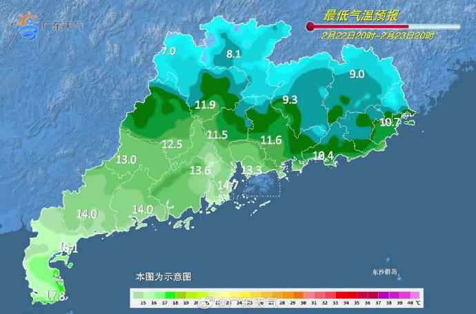 ◆预计,23日-24日早晨,广东省大部分市县天晴干燥,昼夜温差大,早晚寒凉,西部及沿海市县早晚有轻雾、局地有雾,粤北高海拔山区有低于5℃的低温。