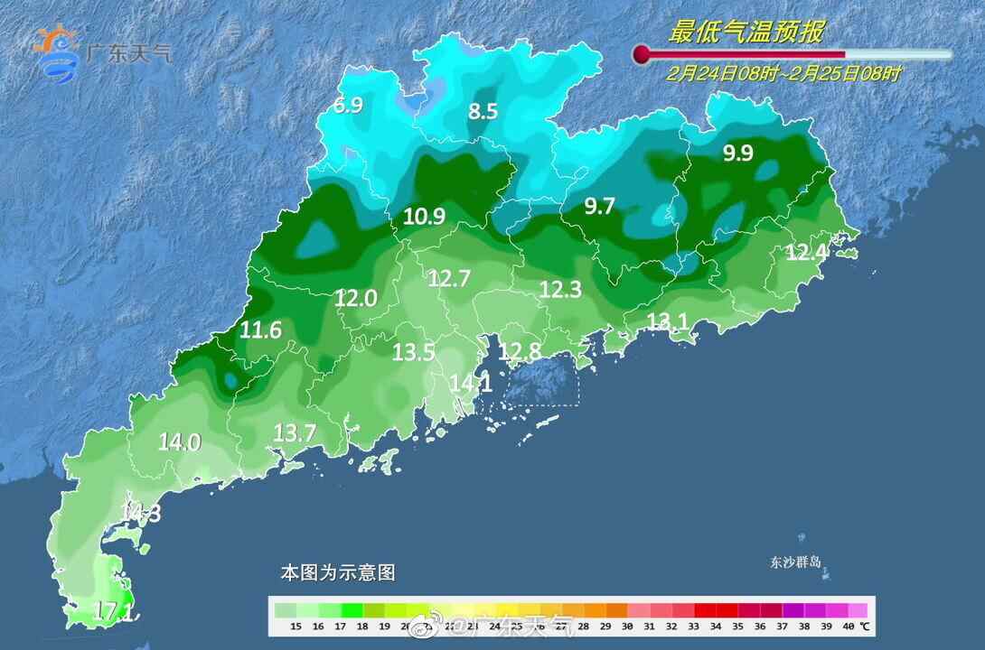 今天,粤北市县多云到阴天转晴天,其余大部市县晴到多云。早晨最低气温:粤北和粤东市县8℃~11℃,雷州半岛市县15℃~18℃,其余市县12℃~14℃。