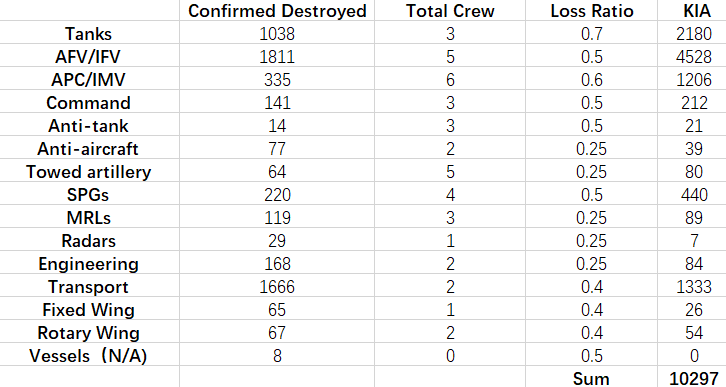 记者参考@osint_east的思路,以同样的估算比例对Oryx上的最新数据进行了计算,得到的数据为10297人。