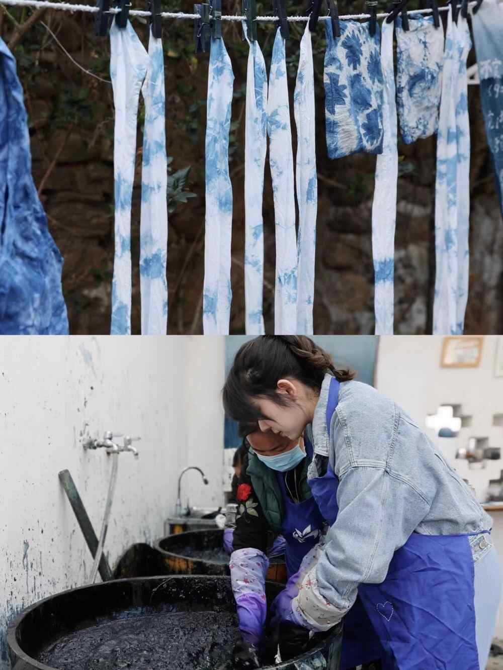 在大理市喜洲古镇内,绿油油的田野生机勃发,蓝续喜洲田园店紧挨着田野,远道而来的游客在店长张翰敏指导下体验扎染,欢笑声不断……