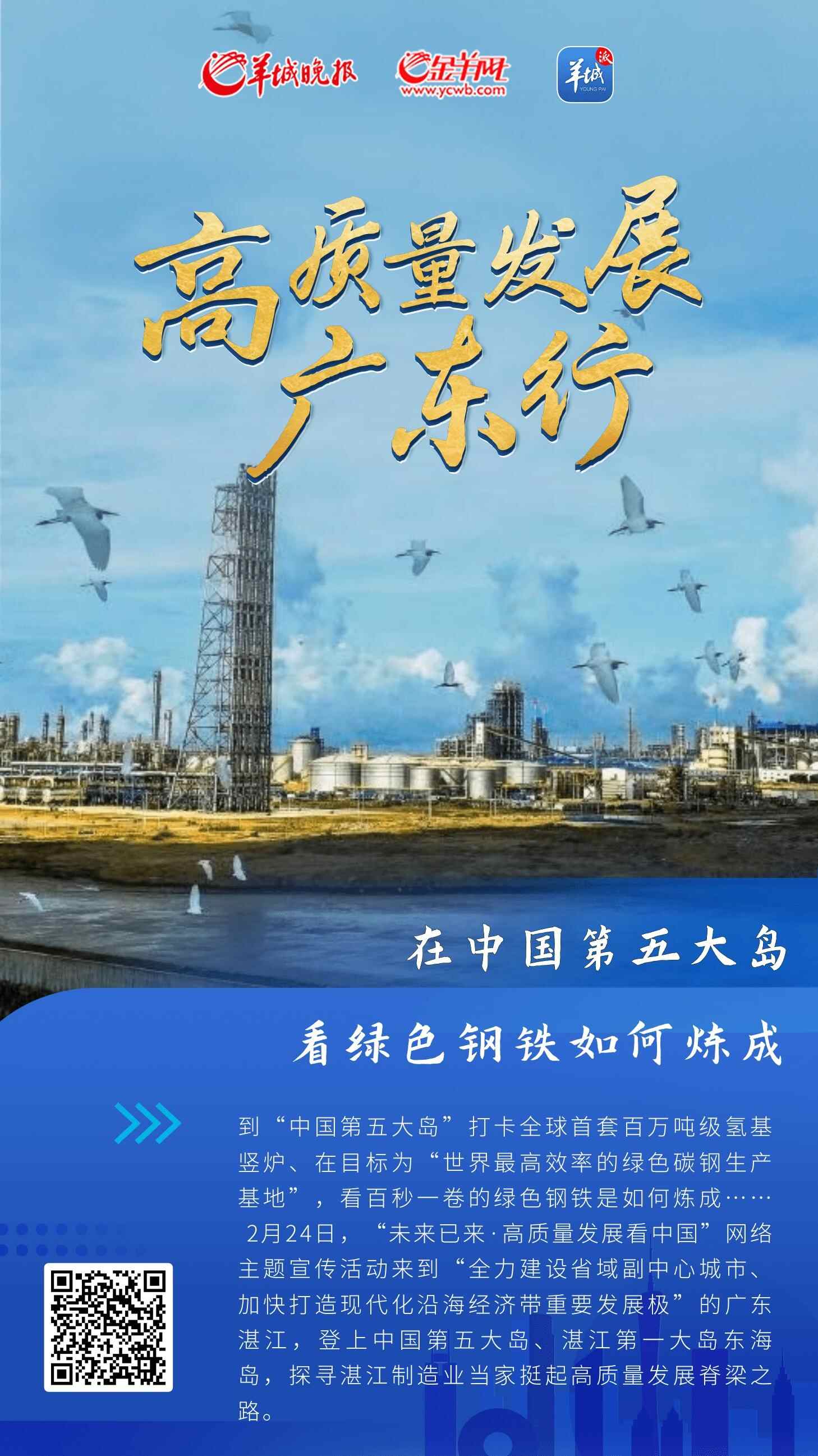 到“中国第五大岛”打卡全球首套百万吨级氢基竖炉、在目标为“世界最高效率的绿色碳钢生产基地”,看百秒一卷的绿色钢铁是如何炼成……2月24日,羊城晚报记者跟随“未来已来·高质量发展看中国”网络主题宣传活动来到“全力建设省域副中心城市、加快打造现代化沿海经济带重要发展极”的广东湛江,登上中国第五大岛、湛江第一大岛东海岛,探寻湛江制造业当家挺起高质量发展脊梁之路。