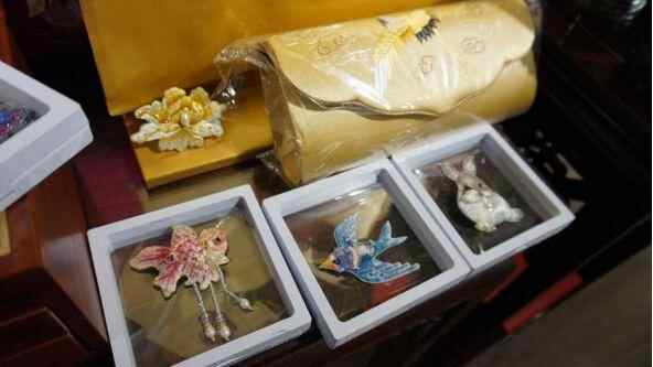 地产、服装、动漫、科技,这些跨度较大的领域,都是他合作过的方向,他希望通过这种方式吸引到更多的人了解广绣,甚至爱上广绣。除去商业合作,王新元还善于将生活中的小细节细化为绣品的创作来源。他设计的广绣“只此青绿”耳环,灵感便来源于春晚的舞蹈节目《只此青绿》,配套的还有胸针、手镯、戒指等首饰。除此之外,聚元祥还推出了精致的广绣茶饼盒、果盘盒等,纸巾盒、眼镜盒、手表盒也是一应俱全,甚至还有广绣台灯、口罩、红包等。这些广绣衍生器具覆盖生活的方方面面,价钱相较于巨幅的刺绣作品也更能让消费者负担得起。