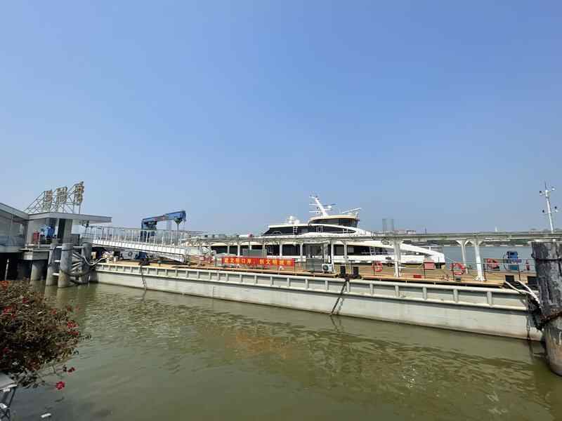 “二楼出境,三楼入境,旅客通过‘海天联运’服务,在口岸完成预登机和行李托运手续即可体验到广州登船、香港登机的便捷通关和优质服务。”项目有关负责人介绍道,首期投入2艘碳纤维高速客船,开通琶洲至香港国际机场航线,约2小时直达。值得一提的是,记者注意到,在联检楼二楼和三楼的免税店正在装修,码头上也已有两艘客船停靠于泊位。