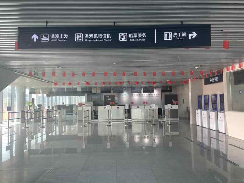 记者走进联检楼大厅注意到,通过首层安检机器,即可搭乘电梯前往二层出境大厅前往港澳,在这一层,旅客可以在整洁宽敞的出发大厅窗口购买船票,也可以办理自助取票和香港机场值机业务,办理好值机业务后通过出境查验通道就可以到达登船口。