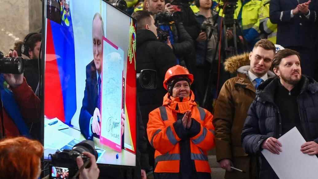 当地时间3月1日,俄罗斯首都莫斯科地铁大环线全线通车仪式举行。俄总统普京在线上出席了仪式。