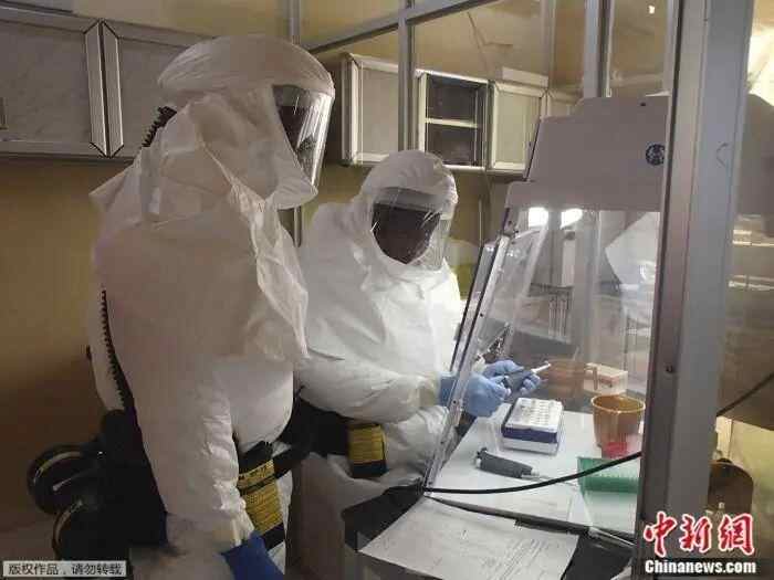 资料图:位于美国德特里克堡的美国陆军传染病医学研究所的技术人员,在一个遏制埃博拉病毒的实验室里进行化验。