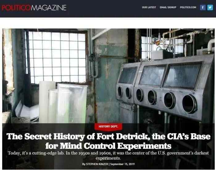“德特里克堡秘史,美国中情局精神控制实验的基地”。美国政治新闻网站“Politico”报道截图