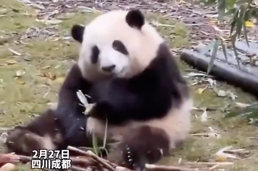 男子此前也同样用四川话喊话大熊猫“四海”,
