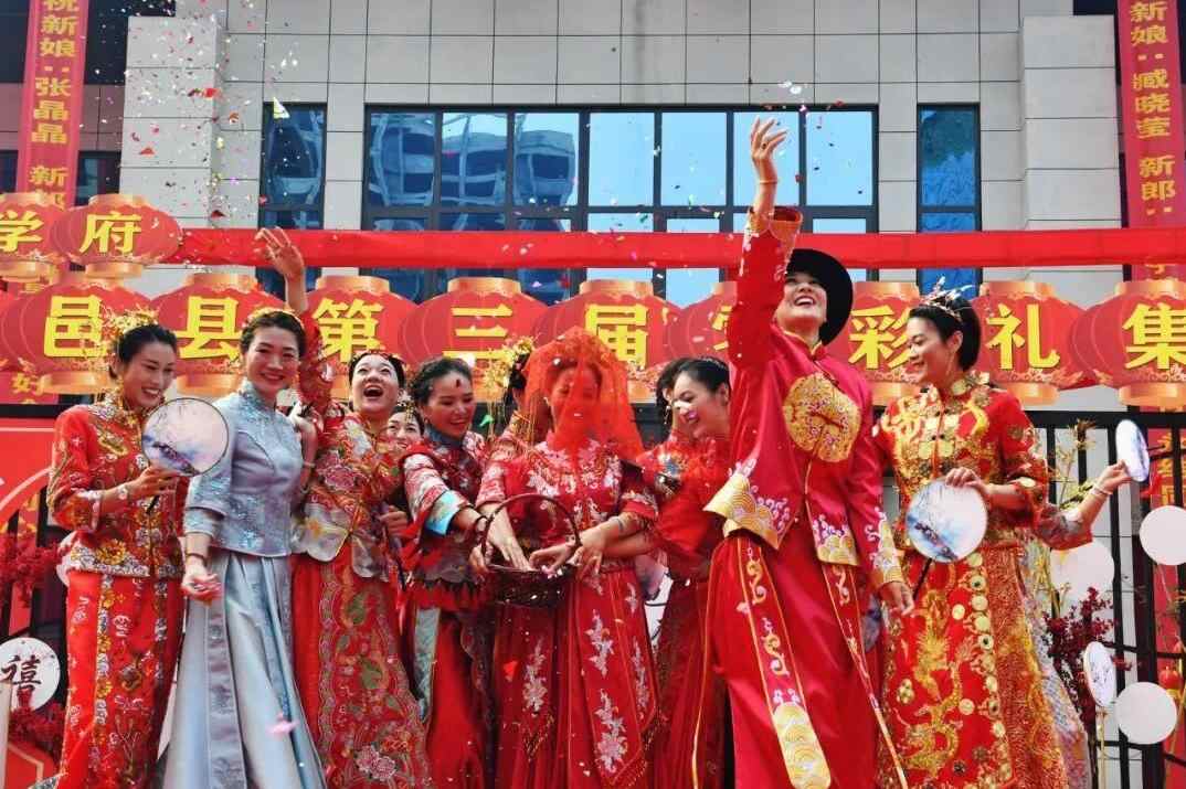 在江西广昌县,2022年9月,曾为“零彩礼”的10对新人举办移风易俗集体婚礼,这场婚礼在线直播。当地媒体报道,一位参加婚礼的新娘表示,“这么热闹又有仪式感的婚礼,是多少彩礼都换不来的。”