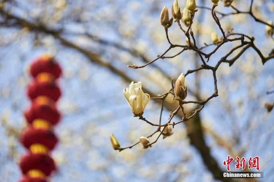 3月6日,法喜寺内玉兰花次第盛开。近日,浙江杭州千年古刹法喜寺院内,一棵有着500年左右树龄的玉兰树开花,独木成景吸引游人。(中新社发 徐梓齐 摄)
