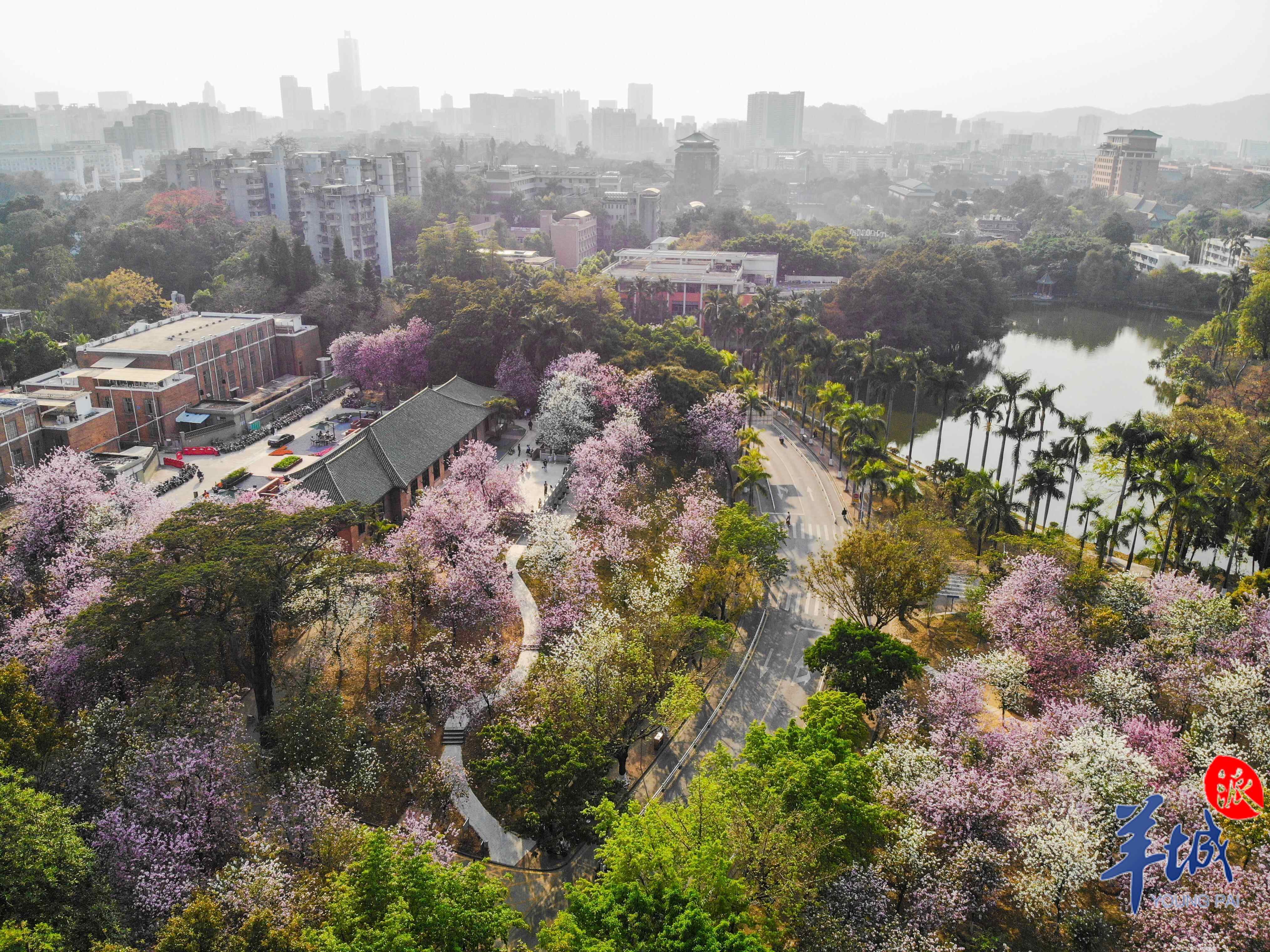 据了解,华农在全校范围有规划地种植不同品种的紫荆花,目前数量已超过8000株,主要以宫粉羊蹄甲、红花羊蹄甲两类紫荆花品种最为常见,多数紫荆花的花期为2月底至3月份,在校园各处均有种植,主要赏花点在学校行政楼和湿地公园片区、教三大草坪周边等。
