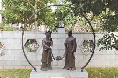 猎德文化街上有一处“诗书传家”雕塑,描述的是在农闲时贤母教子的场景:一位妈妈手捧着书本,孩童倚靠在妈妈身旁,听妈妈讲故事,母子其乐融融。作品反映了猎德村历来重视家庭教育的传统美德,好家风代代相传。