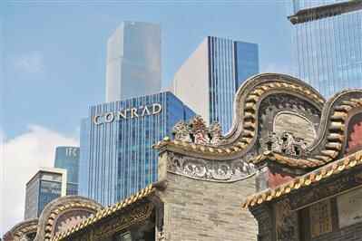 猎德村古意盎然的祠堂建筑与现代写字楼群相映成趣,彩绘屋檐在建筑玻璃的映衬下更有一番风韵,展示出猎德现代与传统兼容并蓄、都市生活与古老民俗在城市中心共生共融的独特气质。