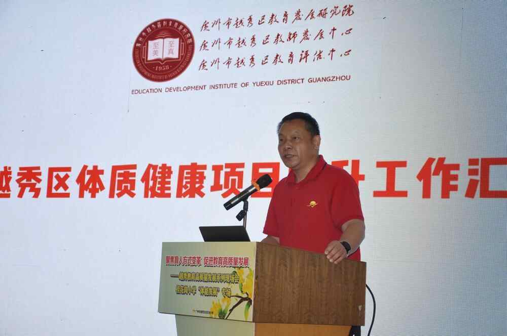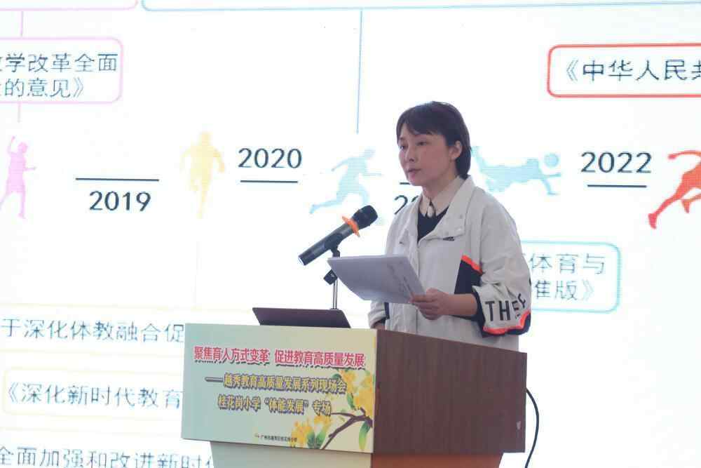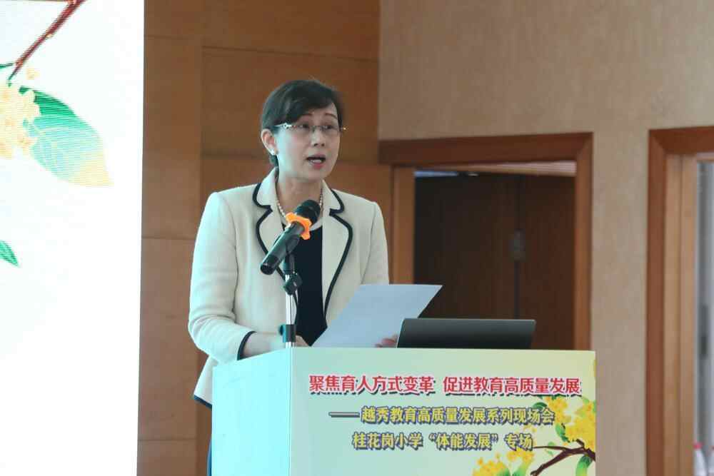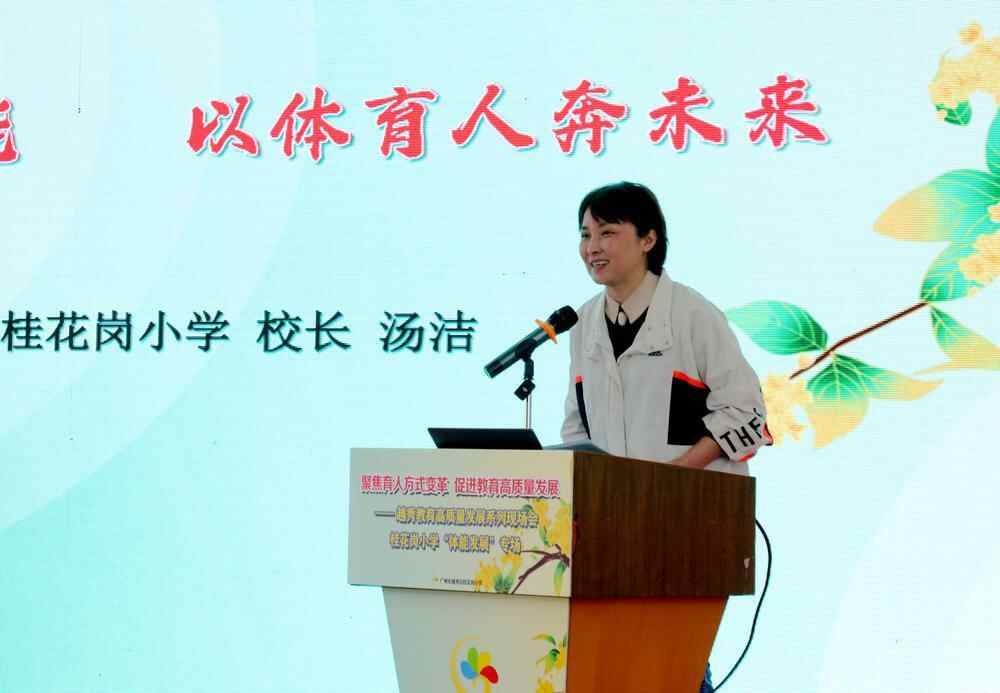 越秀区教育局党组成员、副局长陈晓在致辞中指出:近年来,越秀区在提升中小学生体质健康水平上多措并举,取得了一定成效。其中,校长的高度重视是学校取得优异成绩的首要因素。桂花岗小学校长汤洁在任职期间,探寻五育并举,以体育人的路径,是学校在高质量发展的路上努力创新的成果。
