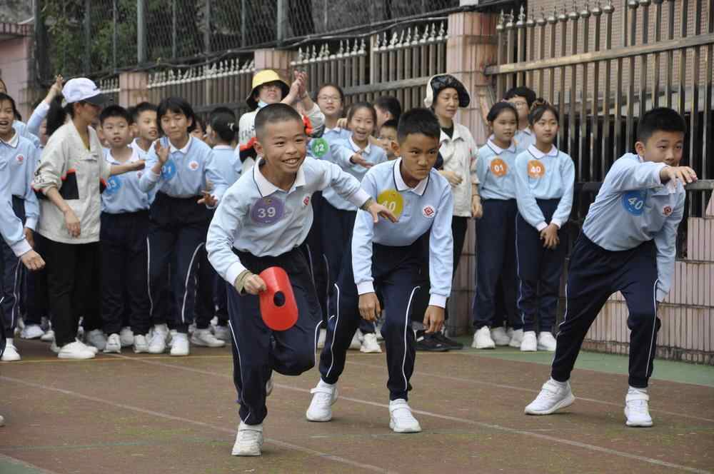 当天的展示活动中,桂花岗小学展示了四五六年级的全员运动会项目吸引了与会嘉宾的目光。大操场上,同学们沉浸在各项比赛中,往返接力跑、跳绳接力赛、座位体前屈接龙赛、仰卧起坐接力赛……比赛氛围紧张而热烈,每一个孩子都在积极参与着,每一个孩子都是这场运动会的主角,每个人都积极参与比赛,大声喝彩。
