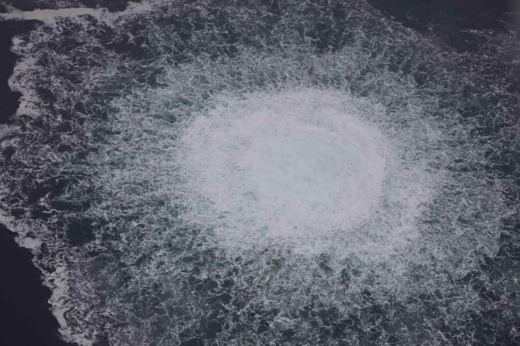 这张瑞典海岸警卫队2022年9月28日发布的航拍照片显示的是,“北溪-1”天然气管道泄漏大量气体。新华社发(瑞典海岸警卫队供图)
