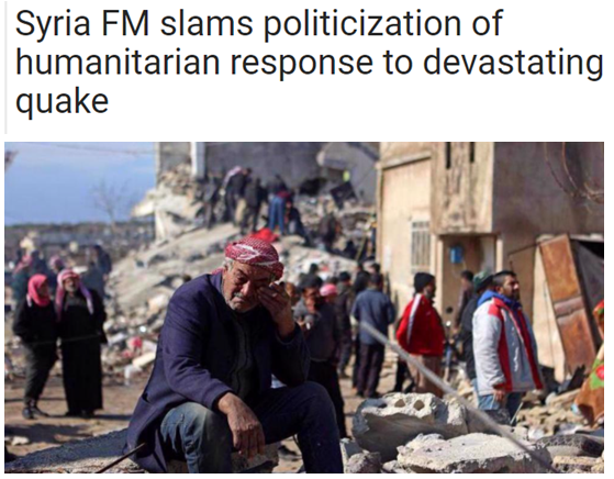 叙利亚外长梅克达德本月在联合国人权理事会会议上发表视频讲话强调,这次地震加剧了叙人民延续12年的苦难,而对叙非法制裁进一步加剧了该国的人道主义危机,其危害不亚于地震本身。