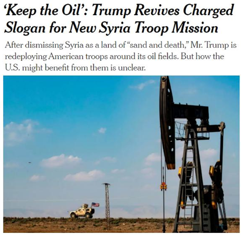 《纽约时报》:对于在叙利亚保留非法驻军的目的,特朗普亲口承认“是为了石油”。