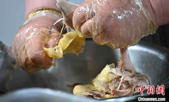 李霞说,一份上好的椒麻鸡需要特别注意三个环节:一是煮鸡,需将选好的鸡宰杀收拾干净,冷水入锅煮,关键在于火候要熟而不烂,鸡肉才有嚼头、有劲道;二是熬制汤汁,需选择纯正的调料,熬出麻辣汤汁的香味;三是浇拌,用汤汁不断浇在手撕鸡肉上,边浇汤汁边搅拌均匀。