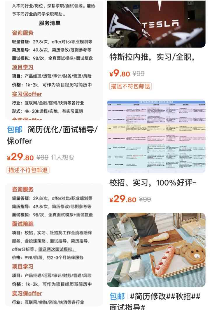 记者在采访中了解到,记者暗访的这两家公司仅是“全职内推”中介公司的冰山一角。记者在电商平台检索“互联网Offer”“包进内推”等关键词,就能找到大量与招聘中介“全职内推”相关的服务,行业涵盖互联网、广告传媒、快消、投行咨询等多领域。