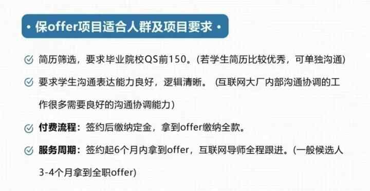 毕业于澳大利亚墨尔本大学的王星向记者透露,自己也曾通过“保offer机构”顺利进入到知名互联网企业。在他缴纳定金、签约后,中介很快将他拉进了辅导学习群。期间,辅导老师每周定期给他发2到3次培训项目,每周汇总一次内推岗位信息,还给安排了为期一个月的远程实习项目。