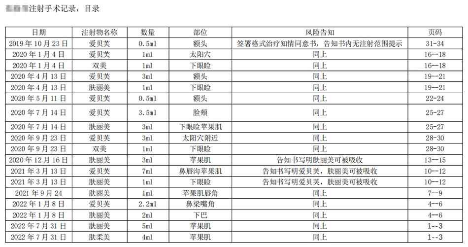 张女士提供的注射记录和知情同意书显示,其多次注射了爱贝芙等药物。