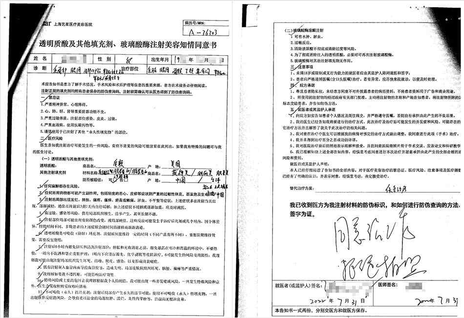 张女士提供的知情同意书