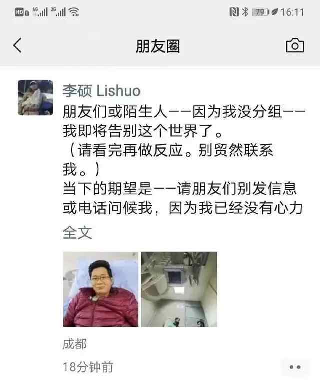 老友们聊起我时,应该都是开心的吧。李硕这破人,不长的一辈子,趣事还不算太少。开心就好,不必伤悼。当下的期望——请朋友们别问候我,甚至不必评论,因为我已经没有心力回复。切切。除非,是我欠您钱,或您欠我钱的。老贼分香卖履,难免唠叨。