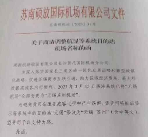 苏南硕放机场真的更名了吗?对此,苏州、无锡两地交通部门均向记者回应称未接到有关通知。