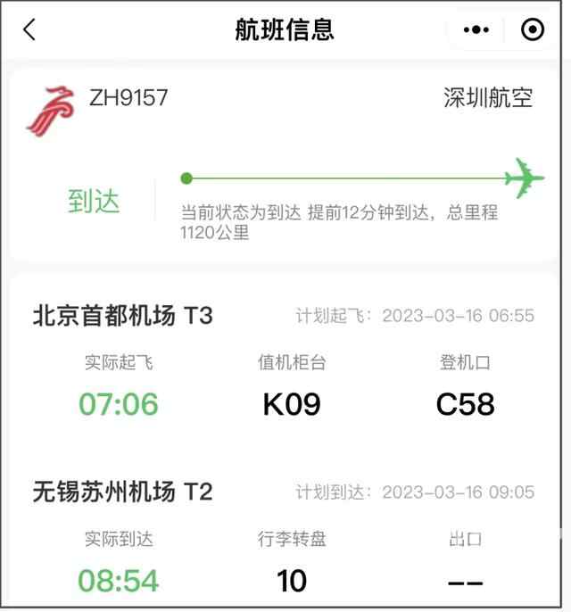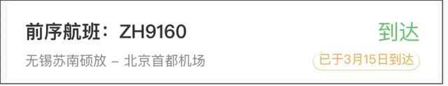 记者查询发现,16日起飞的航班ZH9157,到达的机场已经变为“无锡苏州机场”。而显示的前序航班ZH9160,15日执飞,起飞地还是“无锡苏南硕放”。