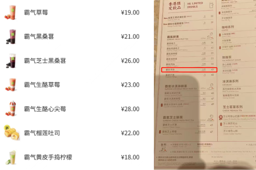 记者发现,主要原因或还是价格和易得性两点。以奈雪的茶“霸气草莓”为例,内地一杯卖19元,香港一杯则卖45港元,折合人民币39元左右。按大部分反向代购费10元一杯来算的话,代购的奶茶也仅为29元,低于香港价格。