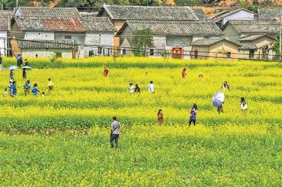 油菜花田里,游客用镜头捕捉春意 吴伟荣 摄