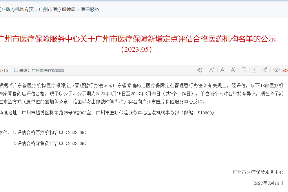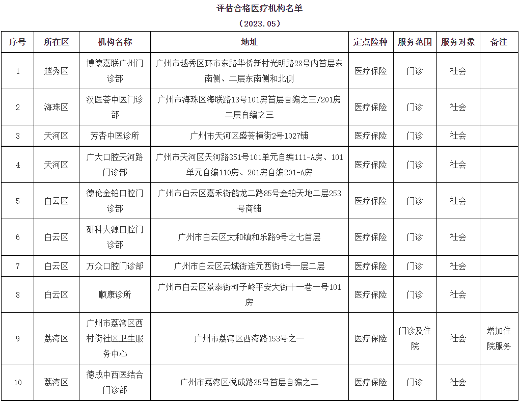 根据《广东省医疗机构医疗保障定点管理暂行办法》《广东省零售药店医疗保障定点管理暂行办法》有关规定,经评估,以下18家医疗机构、28家零售药店评估合格,现予以公示。名单如下: