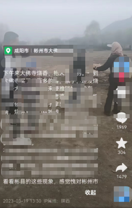 3月19日,有陕西咸阳游客向记者视频报料称,自己在彬州市大佛寺石窟游玩时,遇到多名老人包围强行卖香。随后,记者致电彬州市文化和旅游局了解情况,相关负责人表示,他们已经了解到网友提供的信息,相关负责领导已经到达现场进行处理。