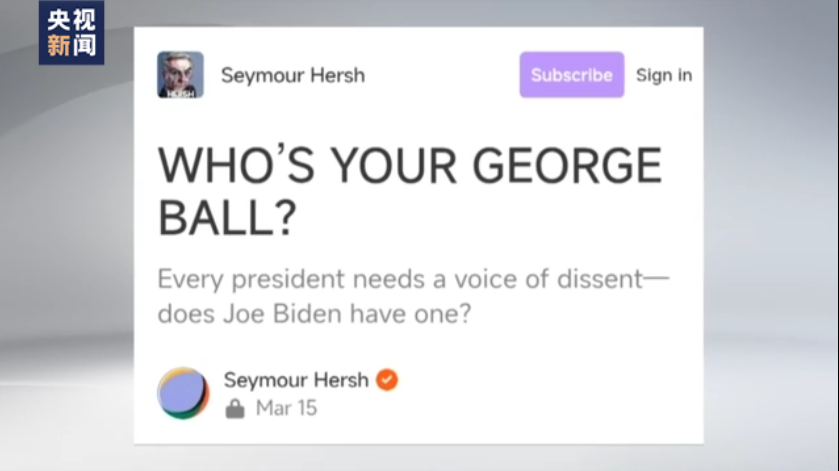 美国记者 赫什:在特朗普之后,《纽约时报》和《华盛顿邮报》担心又一个共和党人上台,所以他们就睁一只眼闭一只眼。参议院多数党领袖查克·舒默,他是民主党人,他不会要求对自己的政党进行调查,他也没有这样做。所以,我所了解的世界是在越南战争期间,在国会,民主党人在很大程度上反对战争,也有许多温和的共和党人反对战争,所以你可以进行投票,但现在是一个不同的世界。