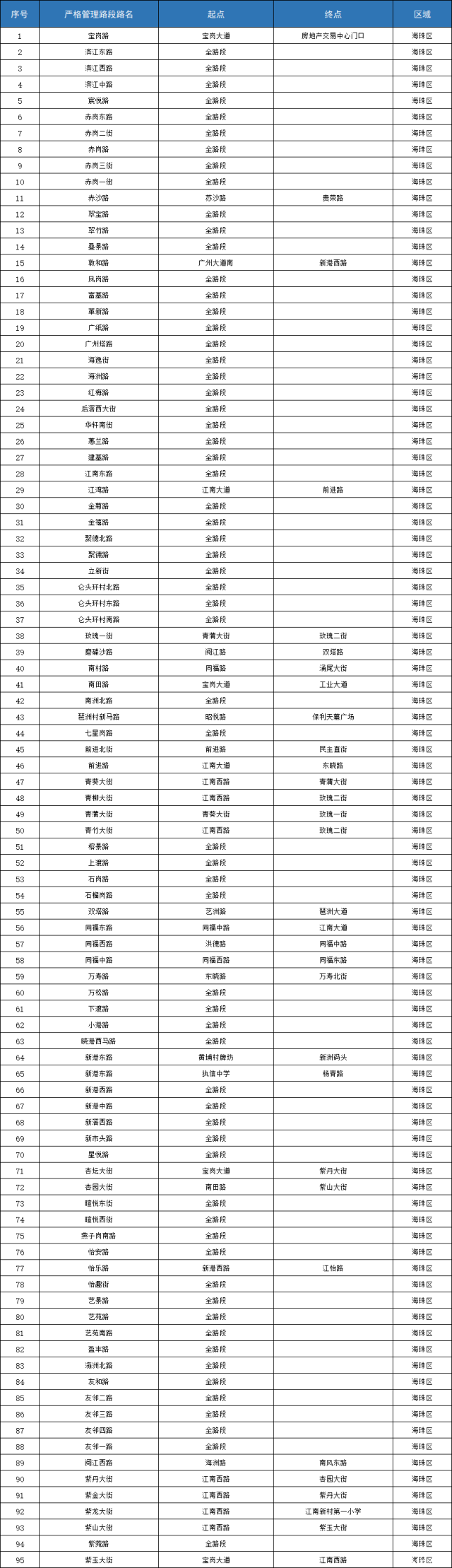 羊城晚报全媒体记者郭思琦报道:近日,记者从广州市公安交警部门获悉,广州交警对违法停车行为严格管理路段进行了优化调整,并将严格管理路段进行公示。据悉,该批路段将于3月24日(本周五)起,设置为机动车违停严管路段,届时2022年发布的《广州交警公布机动车违停严管路段》《广州交警公布增加22条道路作为机动车违停严管路段》同时废止。