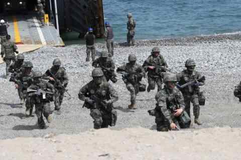 英国海军陆战队“哥曼德”部队也派出40余名官兵首次参加“双龙演习”。韩媒称,这次演习以护航、扫雷、先遣、火力支援、海空突击、夺取目标的顺序进行。其中,海空突击环节将有韩美大批战力参与,展现韩美“压倒性的武力和联合登陆作战遂行能力”。