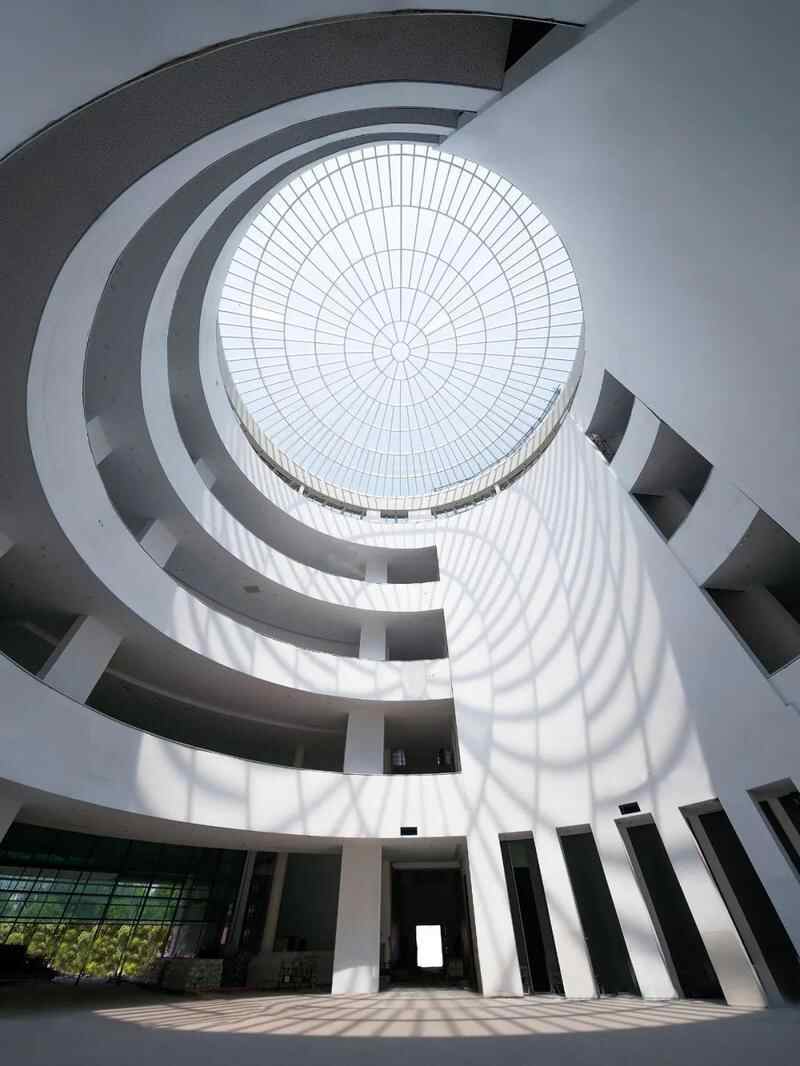 广州艺术博物院(广州美术馆)新馆设计以“水中盛放的英雄花”为主题,建成后如同盛开的红棉立于水中,中央圆形大厅设置采光天窗,为内部公共空间提供充足的自然光线。