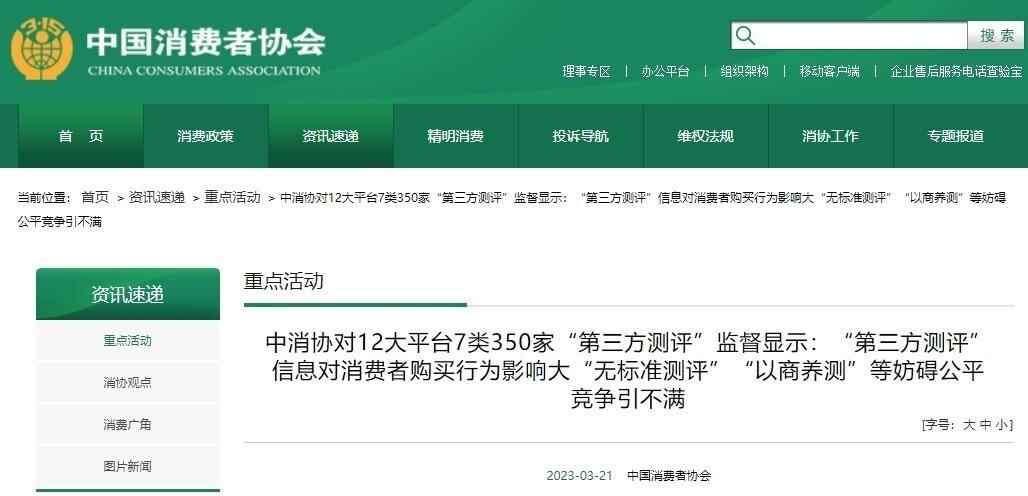 2022年下半年,中消协组织开展“第三方测评”对消费者权益影响调查及分析监督工作。
