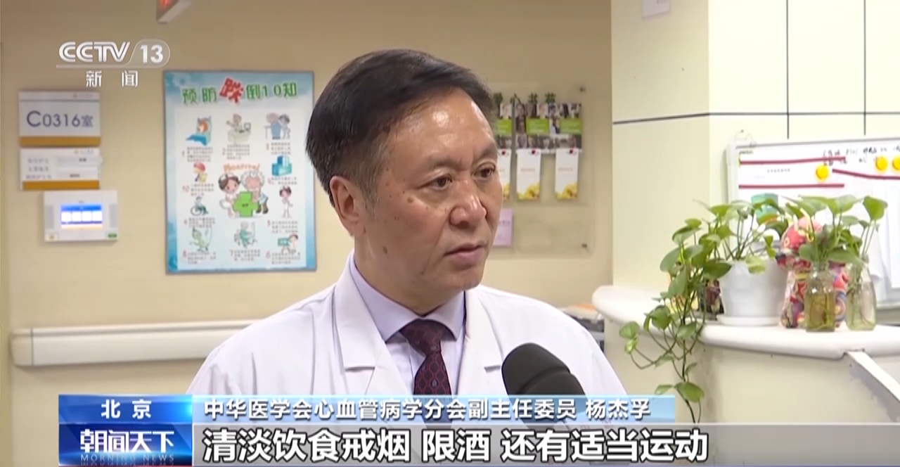 中华医学会心血管病学分会副主任委员 杨杰孚:清淡饮食、戒烟、限酒,还有适当运动,这样一部分高血压的病人,根本不需要吃药,他就能够降到正常。第二个,如果是通过这些手段不能把血压降到正常,那我们就改善生活方式加上药物治疗,药物治疗一定要到医院里面去,在医生的指导下用药。因为不同类型的高血压,不同的病人,他所用的药物是不一样的。