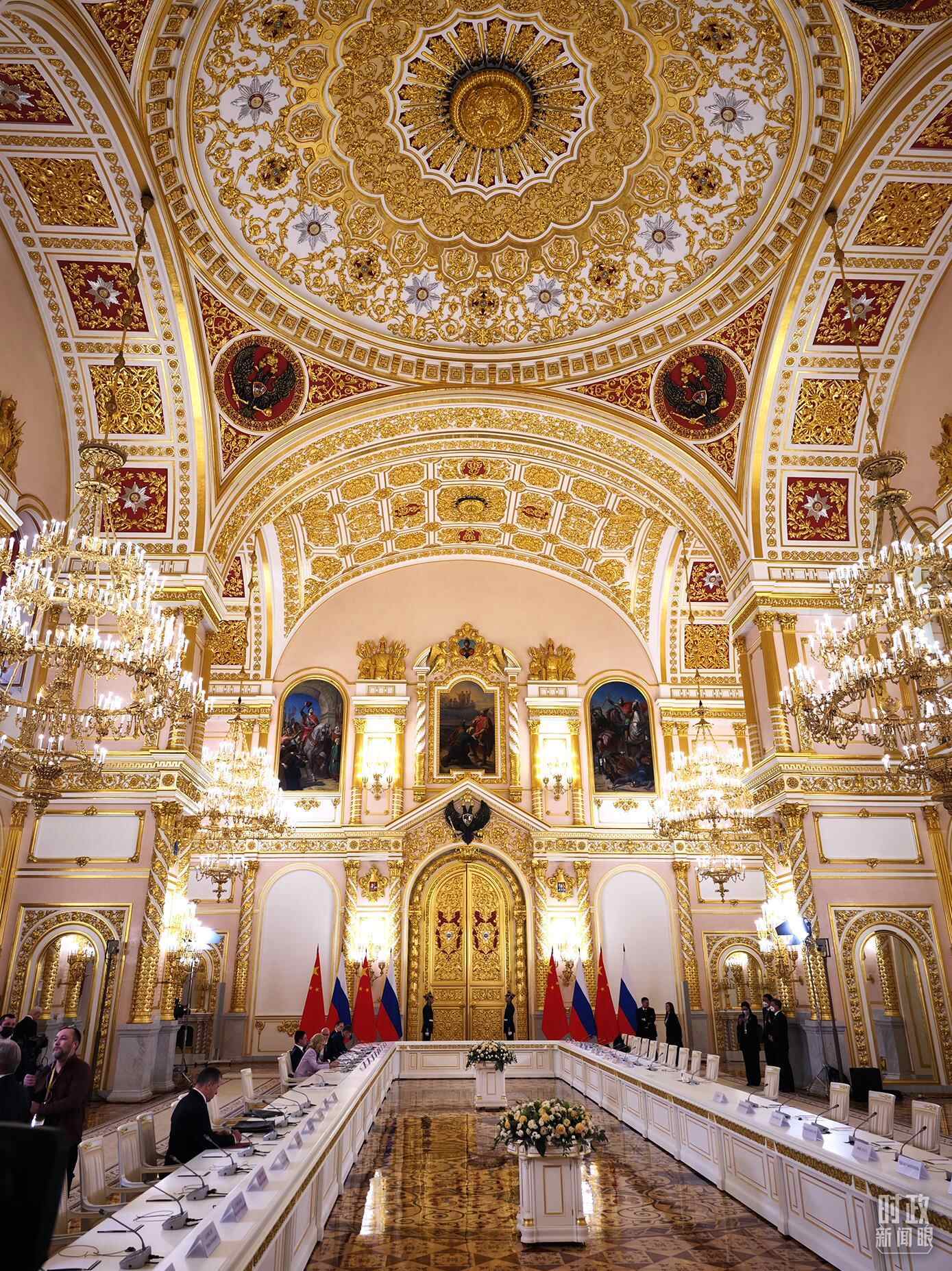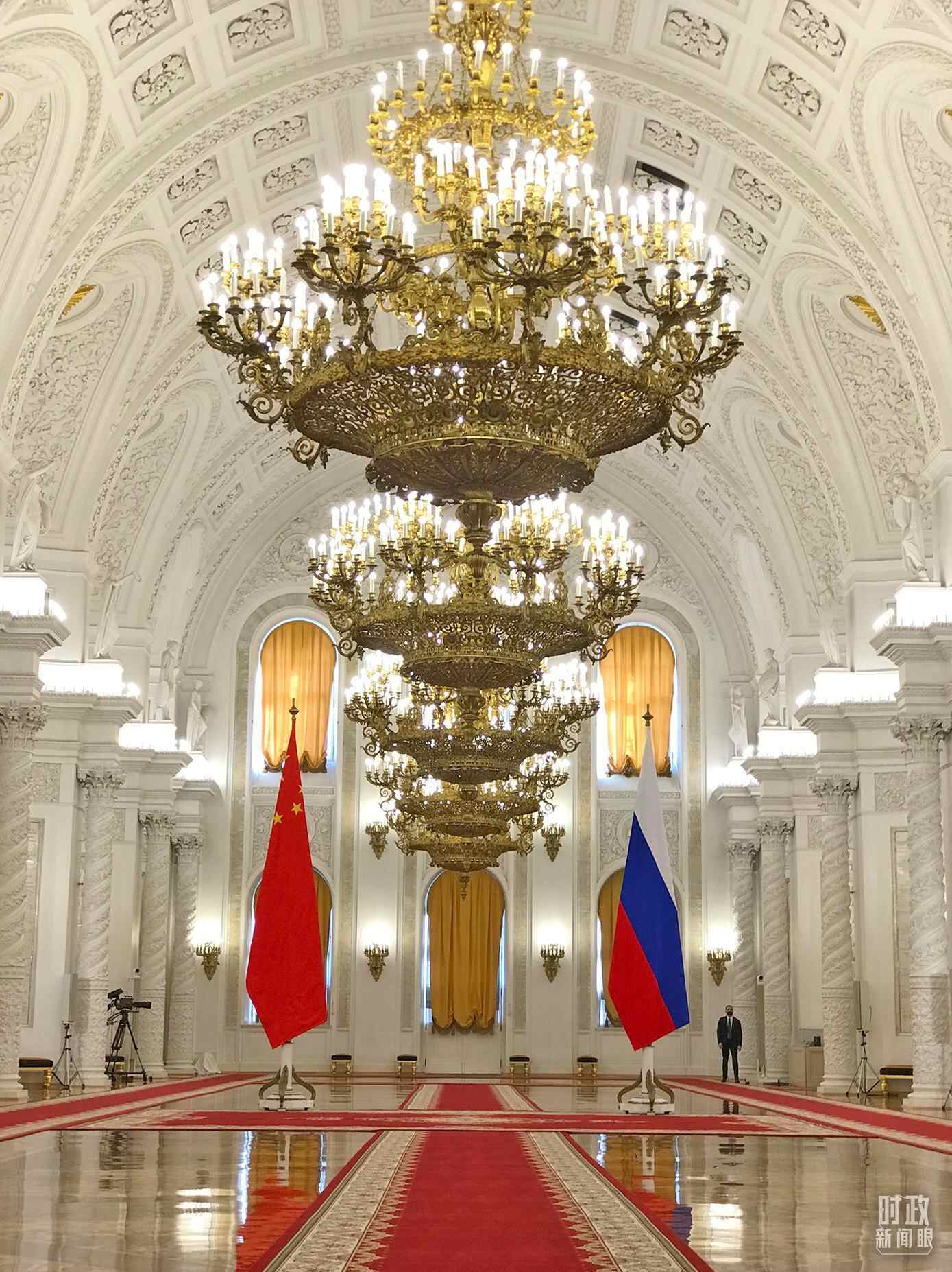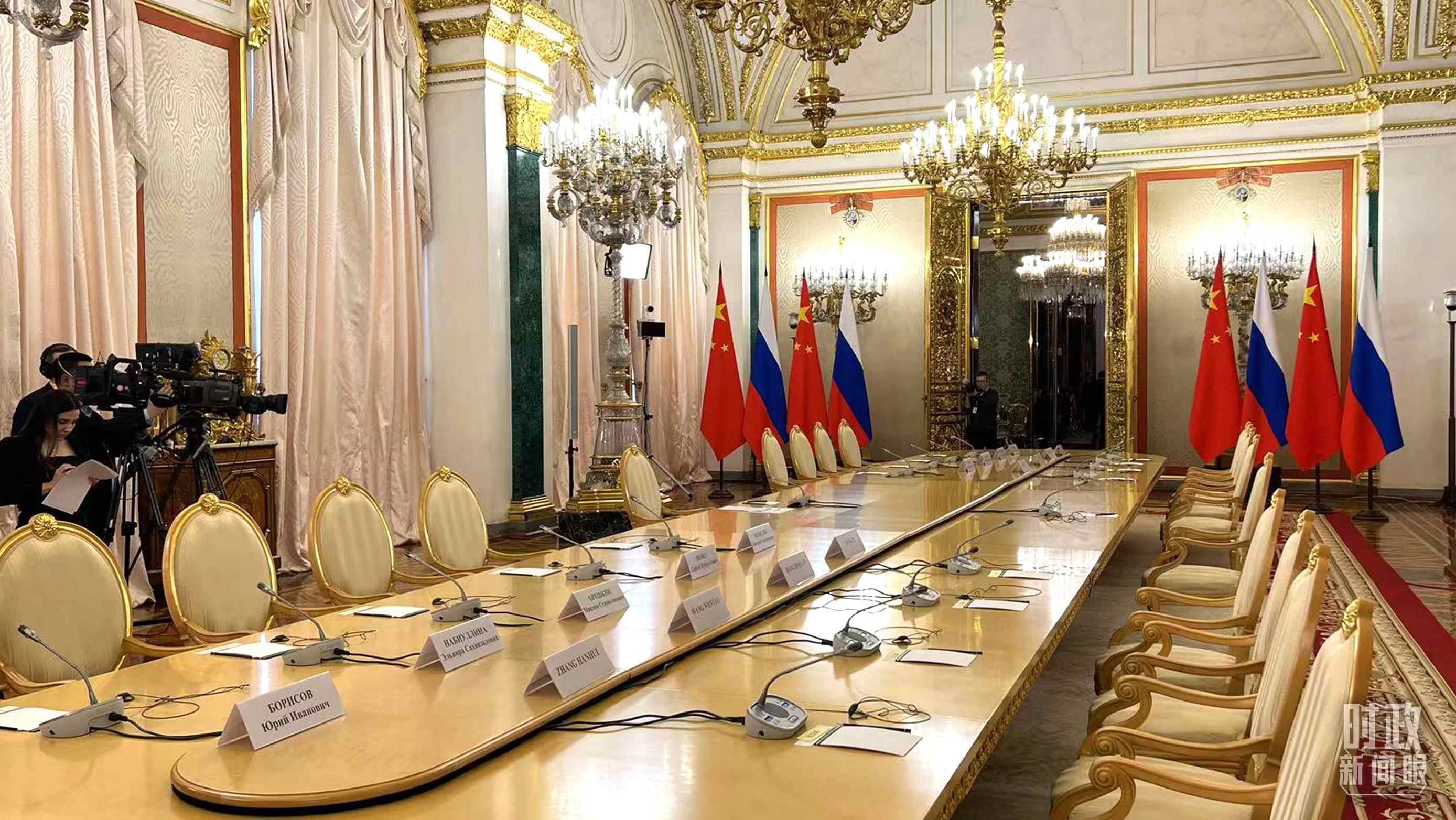 △习主席和普京总统举行大范围会谈的会场。(总台央广记者潘毅拍摄)