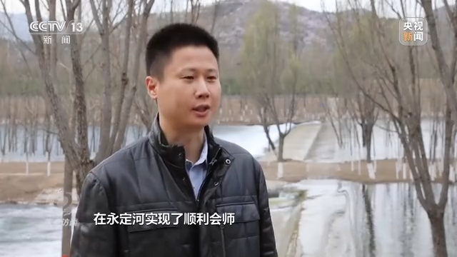 永定河流域投资有限公司规划计划部总经理 张君伟:通过万家寨的引黄北干线,将黄河水输送到永定河,在永定河的下游通过南水北调中线,把长江水又跟北京母亲河联系在一起,等于是黄河水和长江水在永定河实现了顺利会师。