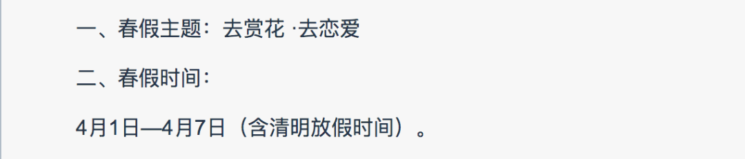 据悉,这是该校例行春假制度。据成都商报消息,该通知意在鼓励同学们走出课堂、走出校园,去接触大自然,感受春天和爱情的美好。