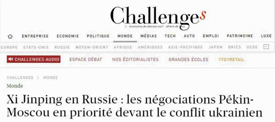 法国《挑战者报》20日报道指出,中国国家主席习近平对俄罗斯进行为期三天的国事访问是友谊之旅、合作之旅、和平之旅,为中俄双边关系发展注入了“新动力”。此次访问还具有重要的经济意义。法国《观点》杂志20日援引法新社报道称,习近平此次俄罗斯之行意义重大,对推动俄罗斯经济发展具有重要作用,有助于俄罗斯缓解当前面临的困境。