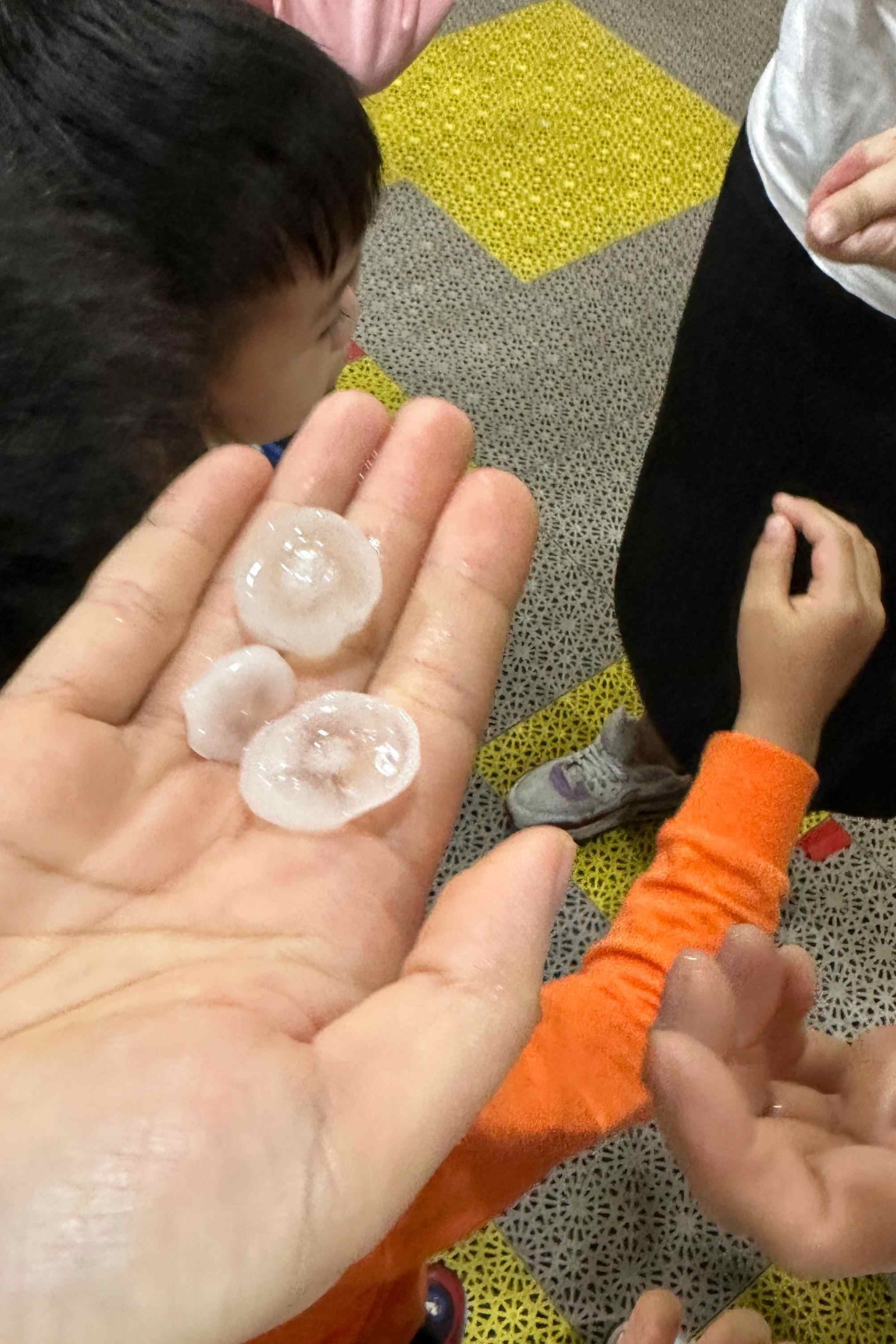 “我听到外面雨下得很响,于是就出去看看。”在惠福东路,市民林先生出外时,伸手一接,发现是冰雹。