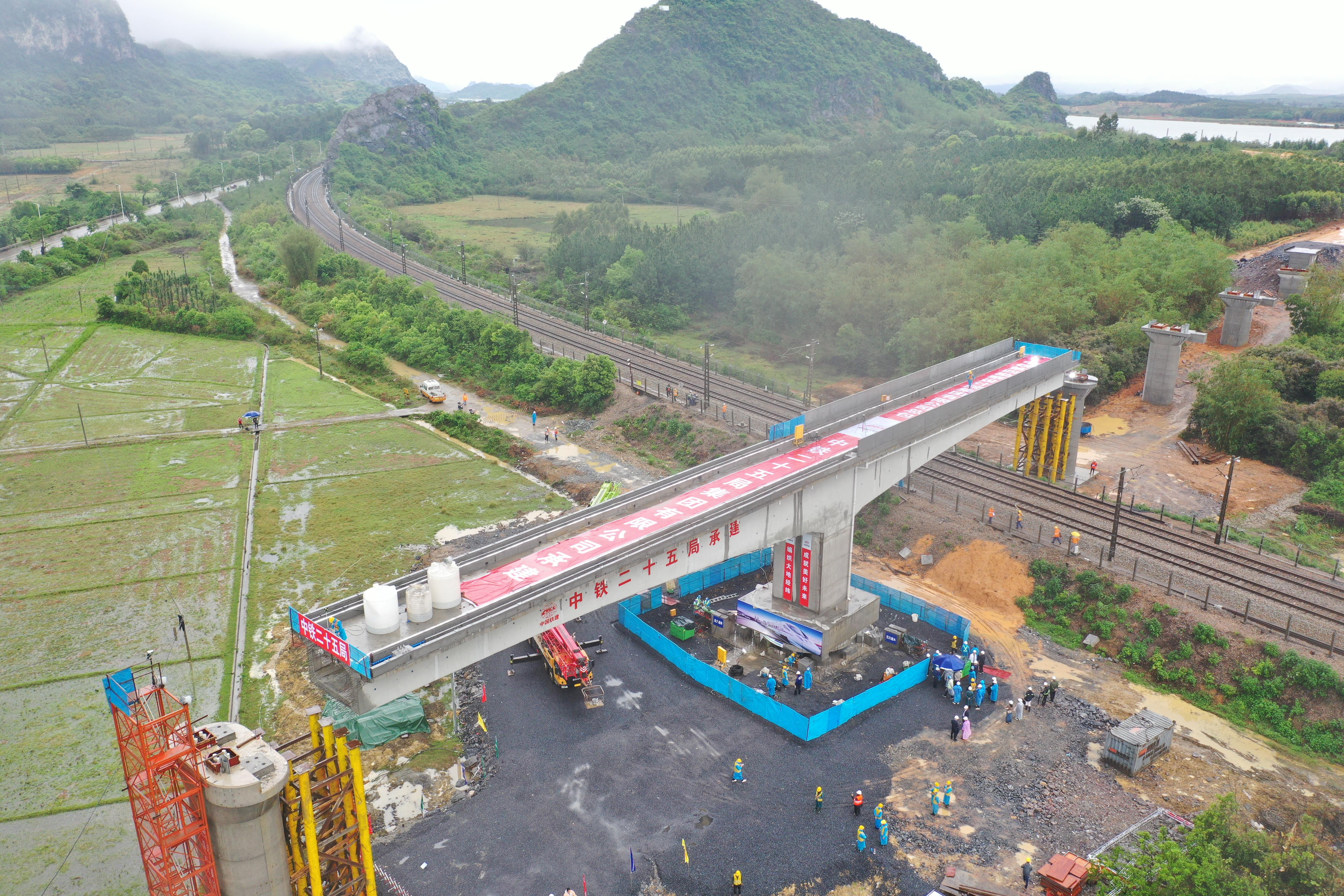 国内最大在建火电项目——清远电厂铁路专用线跨铁路桥完成转体