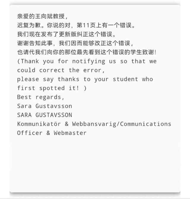 清华大学本科生发现诺奖背景报告笔误,收到来自瑞典的致谢!